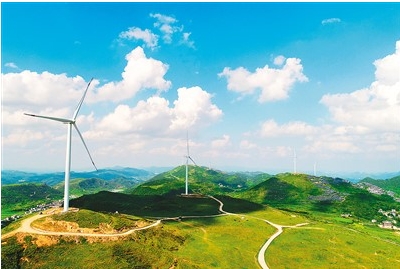 貴州省銅仁市憑借區(qū)位優(yōu)勢和豐富的風(fēng)能資源,加速風(fēng)電產(chǎn)業(yè)布局與發(fā)展。南方電網(wǎng)貴州銅仁供電局全力服務(wù)綠色清潔能源的高效并網(wǎng)和充分消納,助推地方實(shí)現(xiàn)低碳轉(zhuǎn)型目標(biāo)。圖為該市松桃苗族自治縣盤石鎮(zhèn)芭茅村山脊上,風(fēng)力發(fā)電設(shè)備隨風(fēng)轉(zhuǎn)動發(fā)電。向世杰攝(人民視覺)